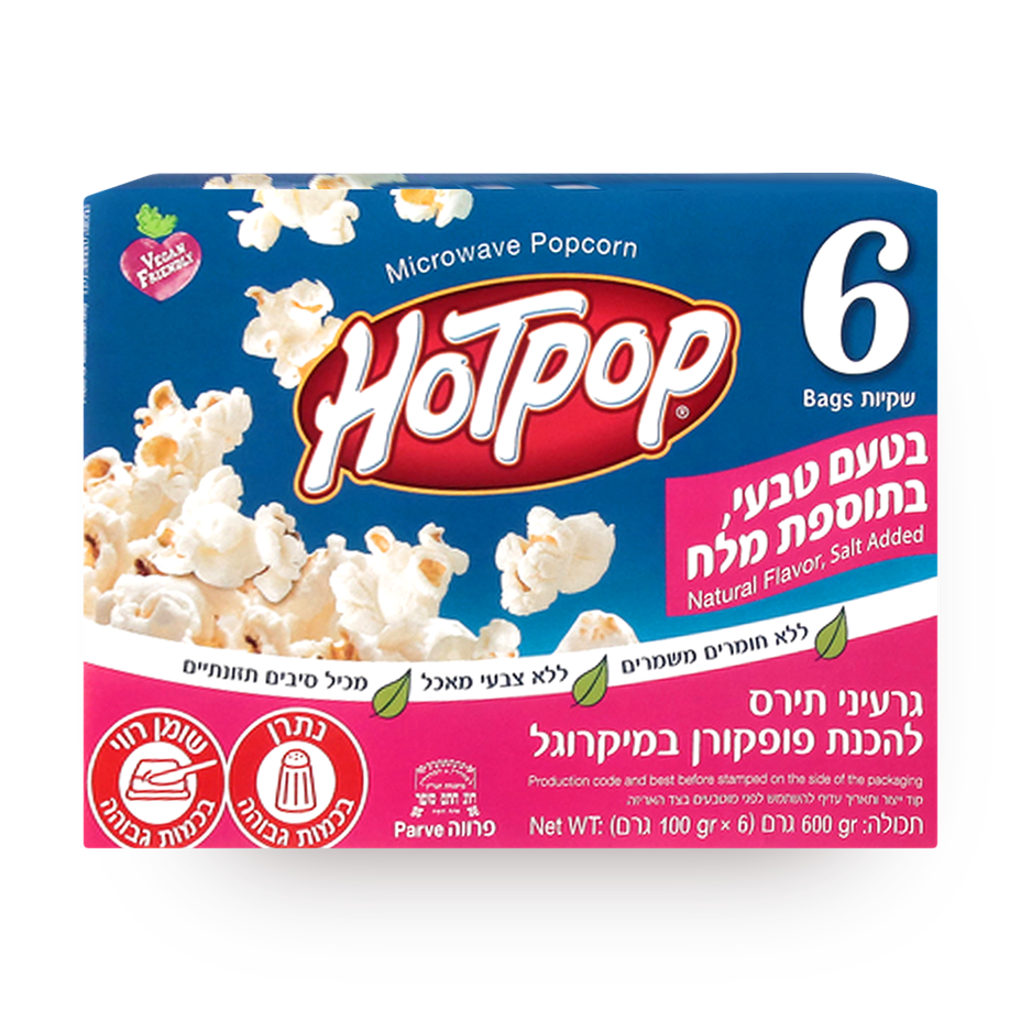 הוטפופ פופקורן בטעם טבעי בתוספת מלח להכנה במיקרוגל