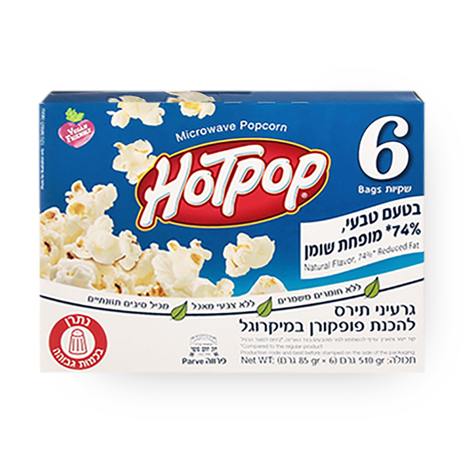 - הוטפופ פופקורן בטעם טבעי בתוספת מלח להכנה במיקרוגל600 ג'