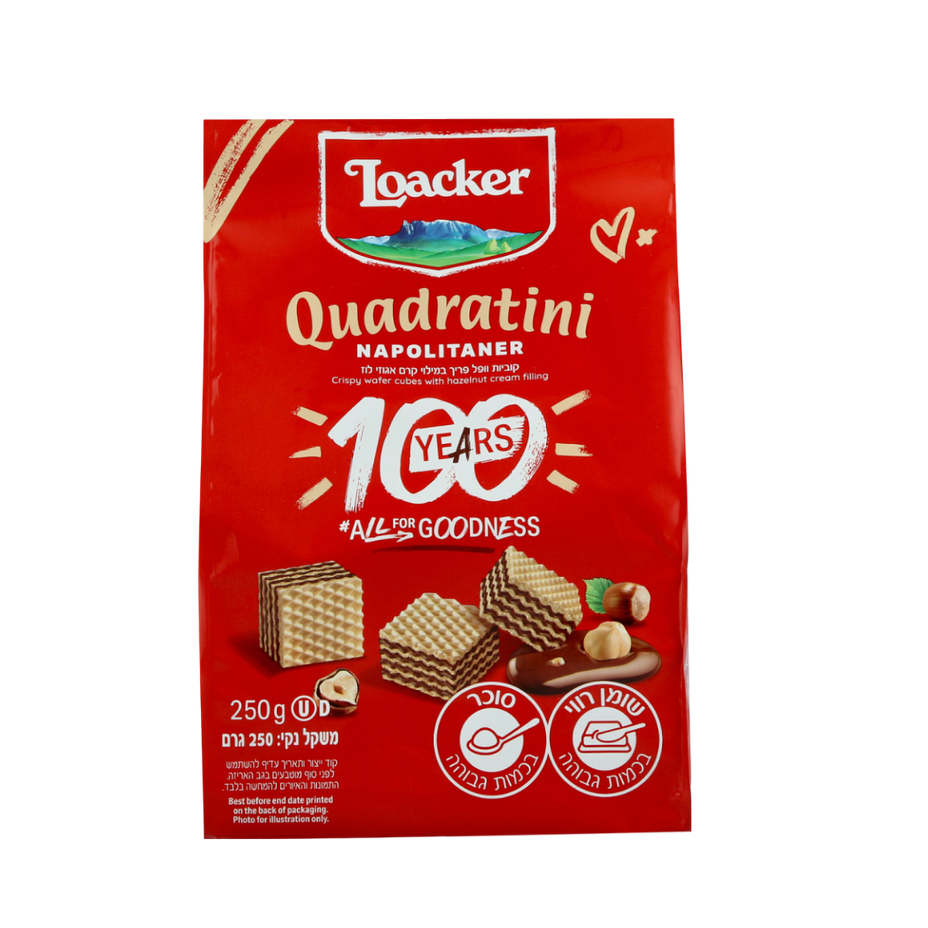9.95 ₪ – 100 ג' - וופל לואקר קואדרטיני שוקו-חלב250 ג'