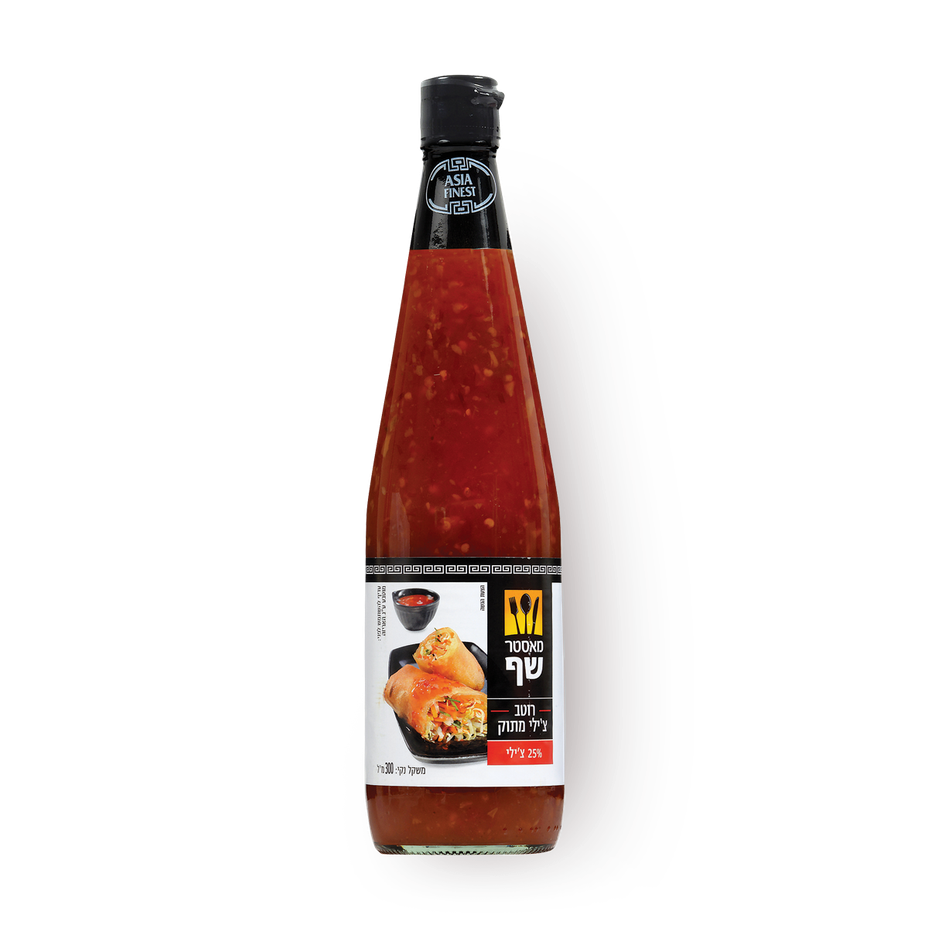 צ'ילי אדום( 25%), סוכר, מים, חומץ אורז,שום, מלח, עמילן טפיוקה( E1442, E1422), מייצב: גומי קסנטן, צבעי מאכל טבעי: אולאורזין פפריקה