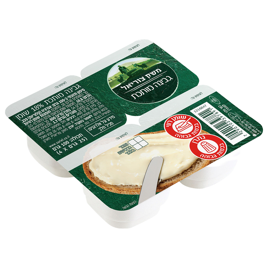 4 × 25 ג'- רכיבים שתויגו: שומן רווי בכמות גבוהה, נתרן בכמות גבוהה, כשר