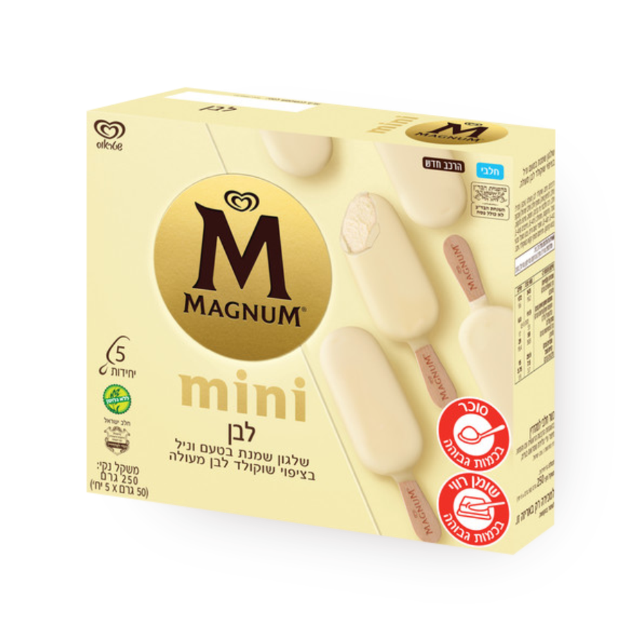 מאגדת מיני מגנום לבן- שלגון שמנת בטעם וניל בציפוי שוקולד לבן מעולה. השילוב המושלם של גלידת שמנת קטיפתית ושוקולד מפנק. מגנום. להתמסר לתענוג.