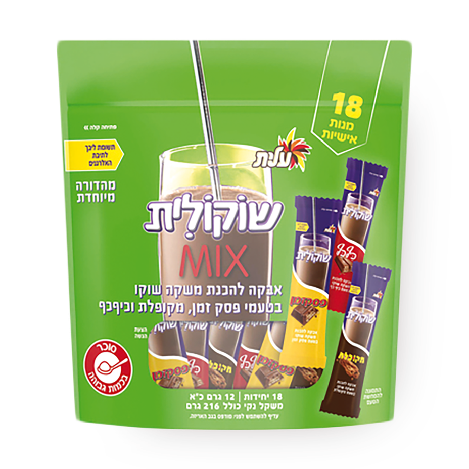 אבקה להכנת משקה שוקו בטעמי פסק זמן, מקופלת וכיףכף