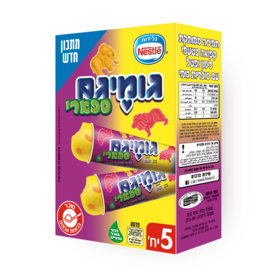 תמיסה ממותקת קפואה בטעמי לימון ופטל עם סוכריות גומי. מכיל סוכריות גומי ואינו מומלץ לילדים מתחת לגיל 5