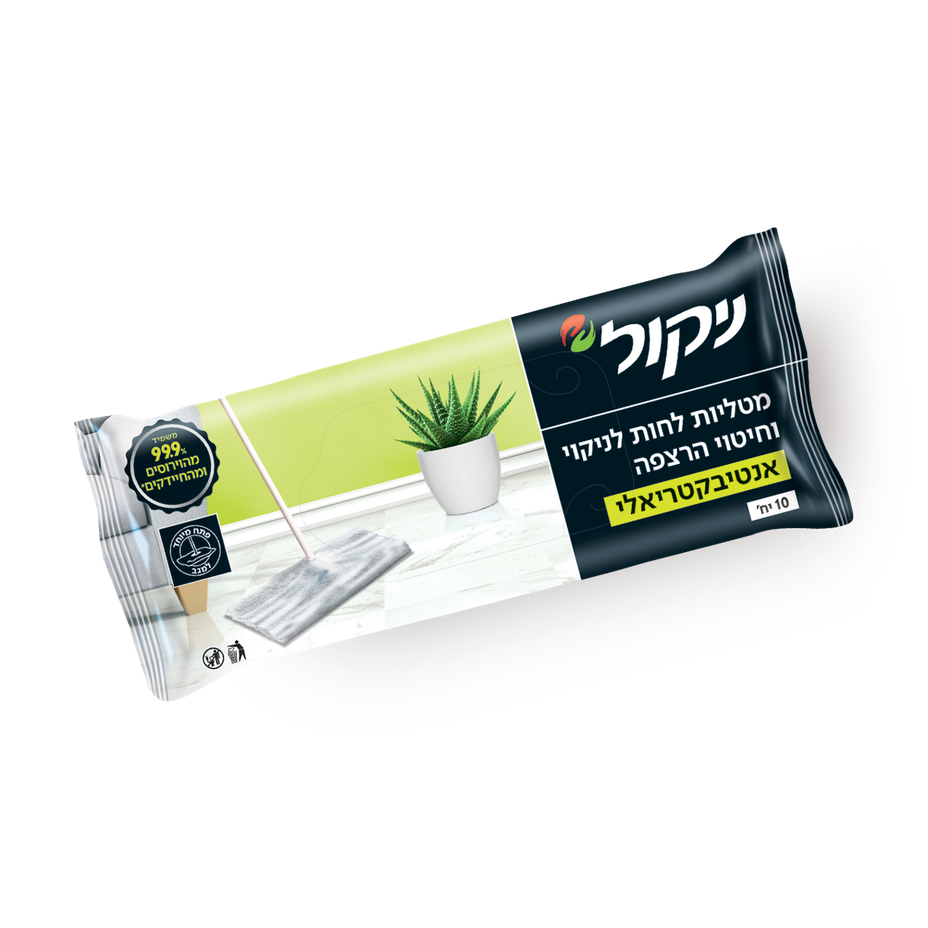 ניקול, מטליות לחות לניקוי וחיטוי הרצפה, אנטיבקטריאלי, משמיד 99.9% מהוירוסים, חיידקים ופטריות.נבדק דרמטולוגית, ניחוח לימון