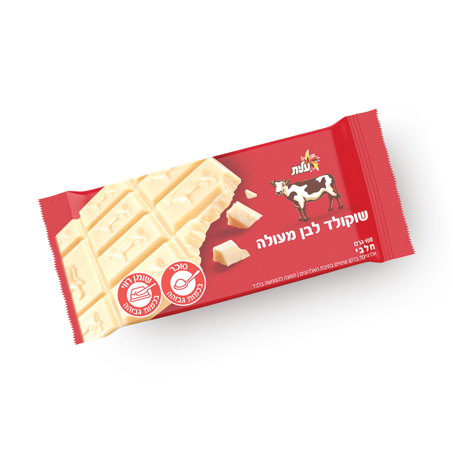 סוכר, חמאת קקאו, אבקת חלב, שומן חלב,לקטוזה, מתחלבים( לציטין ליפתית, E-476) , ונילין. כלל מוצקי קקאו בשוקולד לבן מעולה: 28% מינימום.