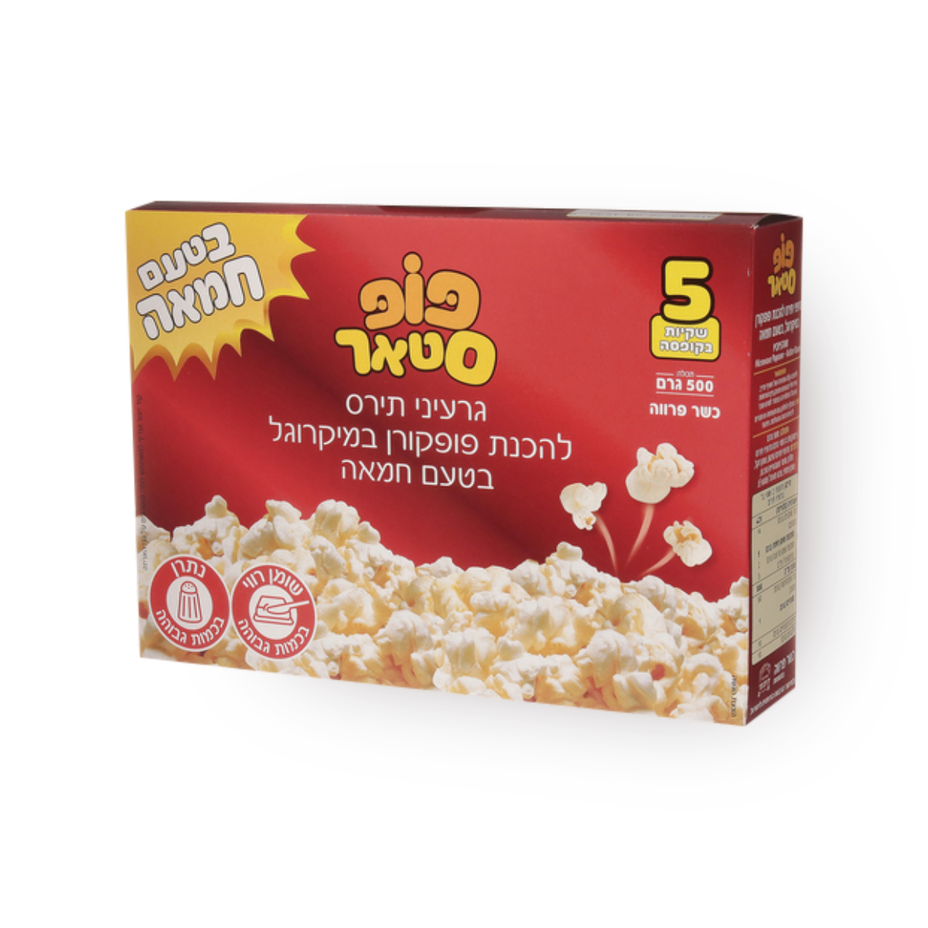 פופסטאר פופקורן למיקרוגל בטעם חמאה 5 יחידות 500 גרם