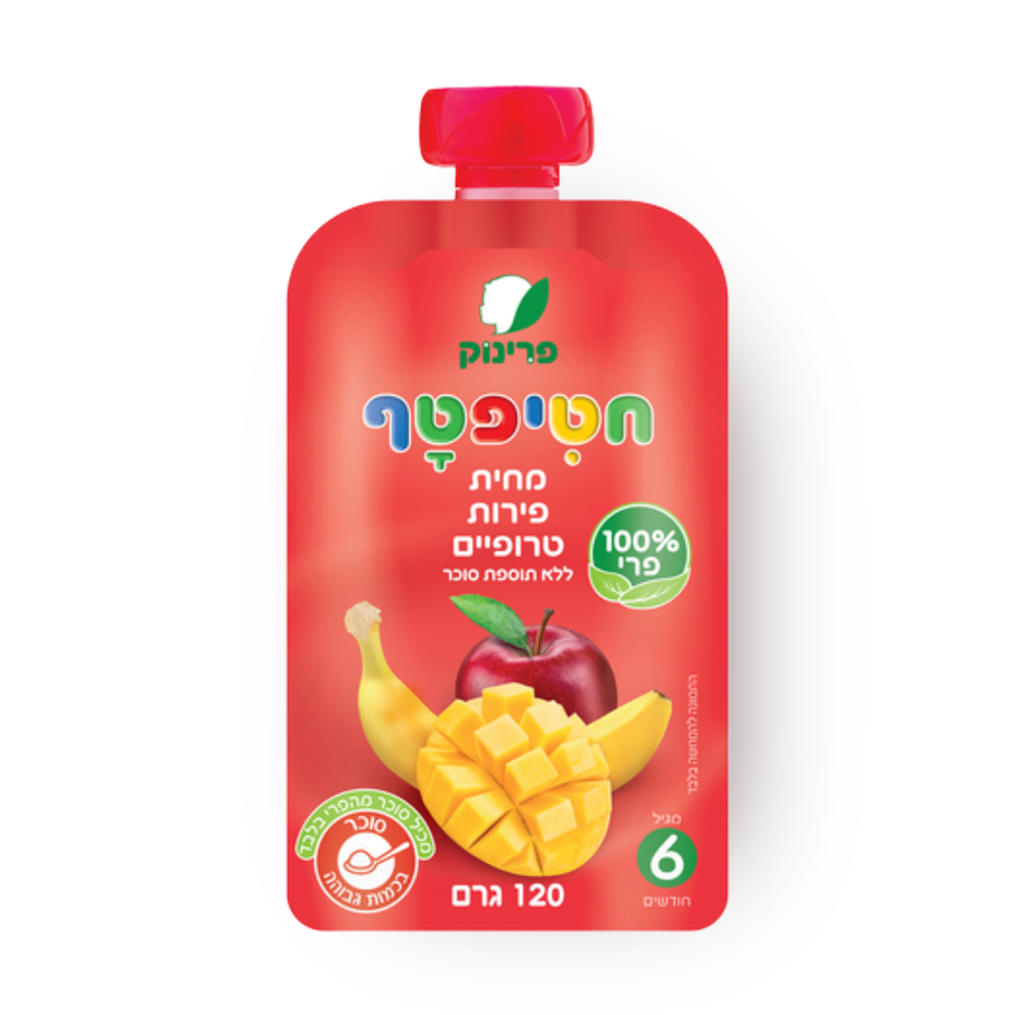 פרינוק חטיפטף מחית פירות טרופיים 100% פרי, 120 גרם