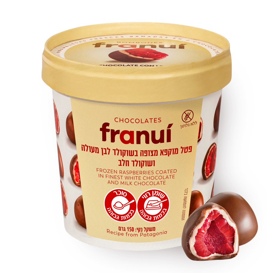 פטל מוקפא מצופה בשוקולד לבן מעולה ושוקלד חלב מעולה