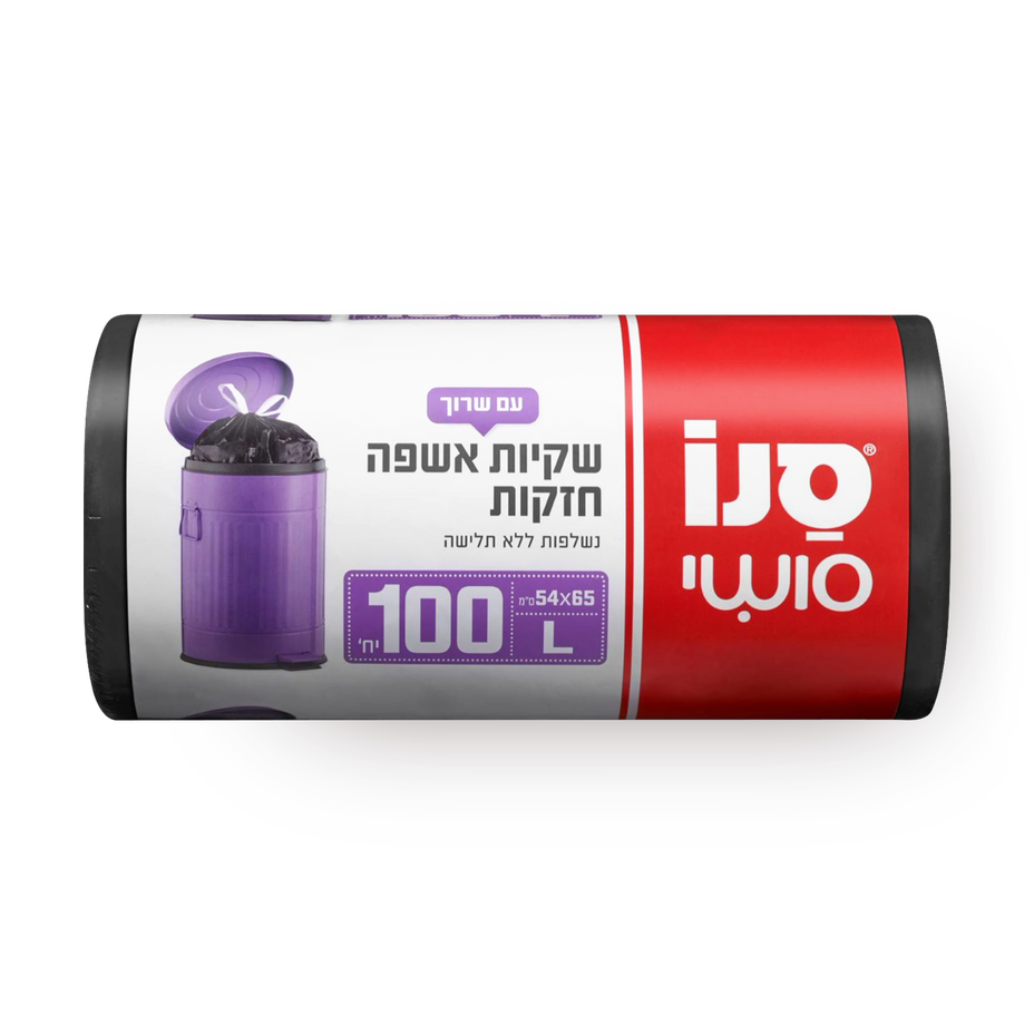 100 שקיות אשפה גדולות , חזקות ואטומות, נשלפות ללא תלישה, עם שרוך