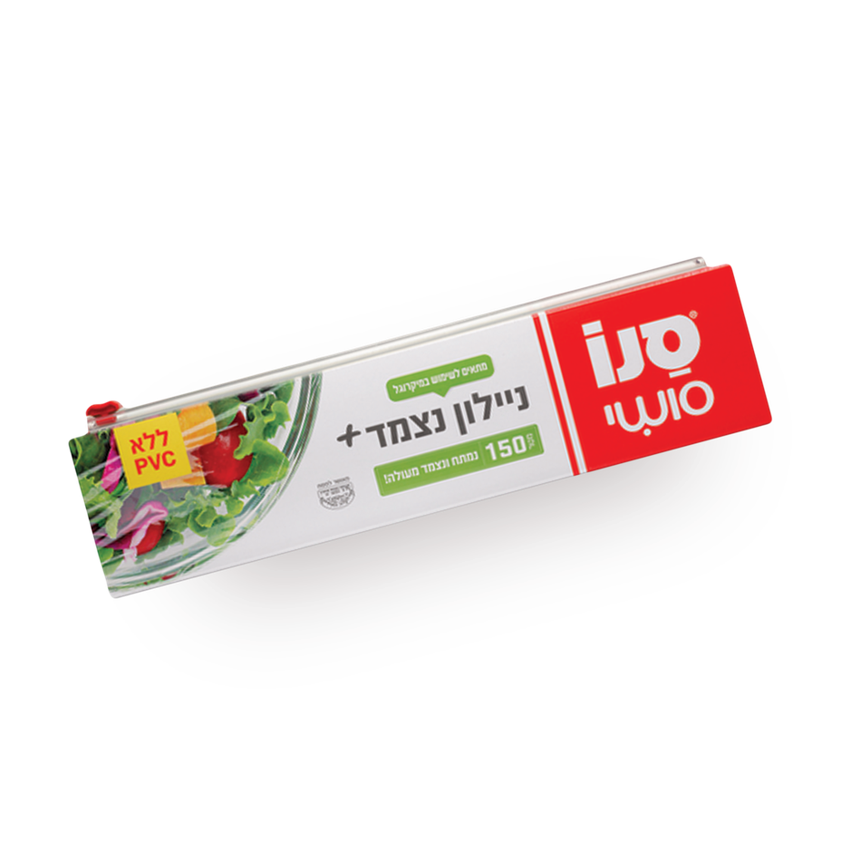 סנו סושי - ניילון נצמד+ 150 מטר נמתח ונצמד מעולה, ללא PVC, מתאים לשימוש במיקרוגל שומר על אטימות וטריות, לאחסון מזון ולהקפאה