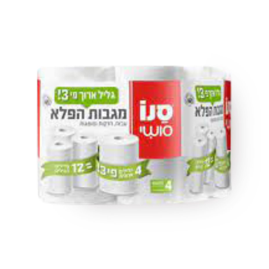 סנו סושי בגליל. פי 3 אריזה מכילה 4 גלילים ארוכים פי 3 = 12 גלילים רגילים .גלילים רגילים באורך כולל של 126.96 מטרים, מידות כל דף 22.5 * 23 ס"מ. המוצר עשוי מנייר מגבת פרמיום מ- 100% תאית נקייה דו שכבתית עבה וחזקה!אוורירית, בעלת נפח וכושר ספיגה מעולה!
