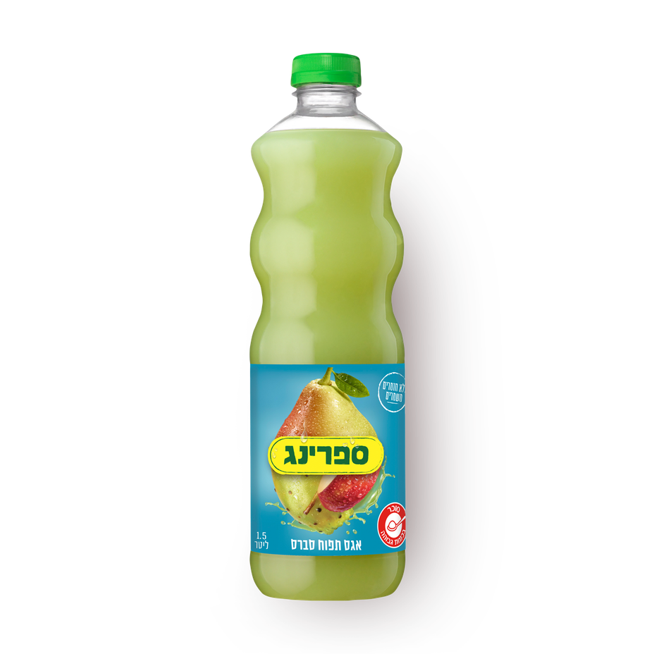 מים, מיץ אגסים*( 16%) , סוכר, מחית תפוחים*( 3%)( מכיל 10% או יותר רכיבי פרי) , מייצבים טבעיים( פקטין, E412, בפסח-פקטין) , חומצה( חומצת לימון) , מעכב חמצון - חומצה אסקורבית( ויטמין C) מווסת חומציות( E331iii) , חומרי טעם וריח, מיצוי סברס( 1%) , צבע מאכל( כלורופילין) . *עשוי מרכז