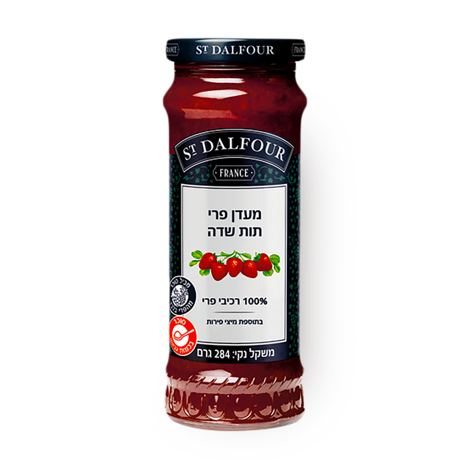 תות שדה( 51%), מיצי פירות מרוכזים( ענבים, תמרים) ואננס, מיץ לימון. מכיל 52% סוכר מהפרי.
