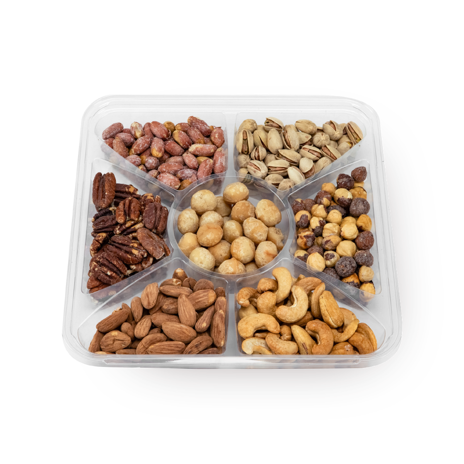 בוטן קלוי ענק, אגוזי לוז (בונדוק) קלויים, שקד קלוי ענק, אגוז מקדמיה קלוי, פסיטוק חלבי קלוי ענק, קשיו קלוי ענק, פקאן