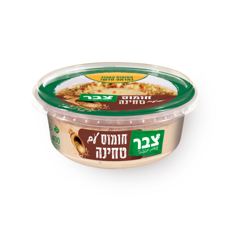 חומוס מבושל 62% ( מים, חומוס, מווסת חומציות( סודיום ביקרבונט-סודה לשתיה ) ) , טחינה גולמית 17% ( מכיל שומשום ) , מים, שמנים צמחיים ( סויה, קנולה ) , מלח שולחן, תבלינים, חומצת מאכל( חומצת לימון ) ,חומר משמר ( פוטסיום סורבט ) , מייצבים ( קסנטן גאם, גואר גאם ) . מכיל 10% סלט טחינה כתוספת