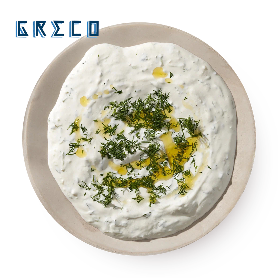 גבינת שמנת 32%, גבינה לבנה 24%, יוגורט 10%, מלפפון 7%, שום, שמיר, מלח, פלפל שחור.