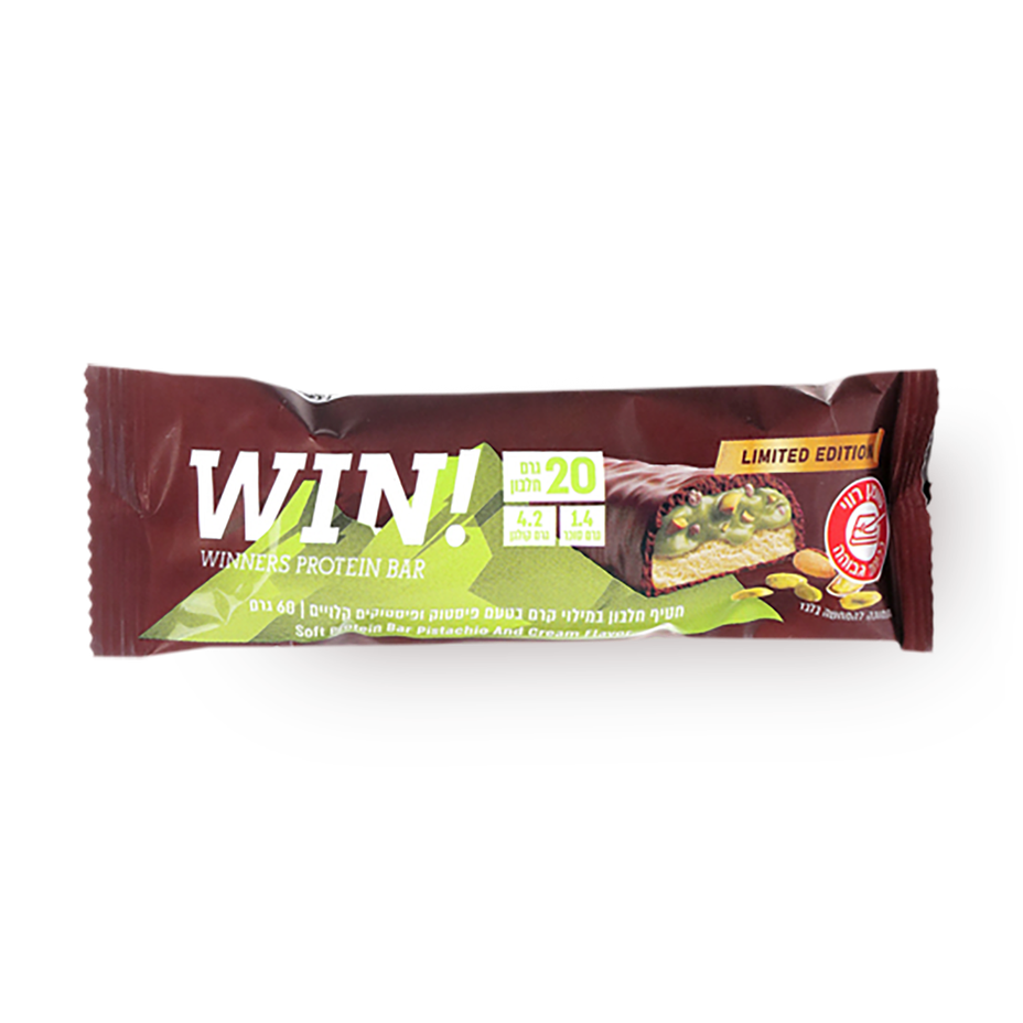WIN! חטיף חלבון במילוי קרם בטעם פיסטוק ופיסטוקים קלויים