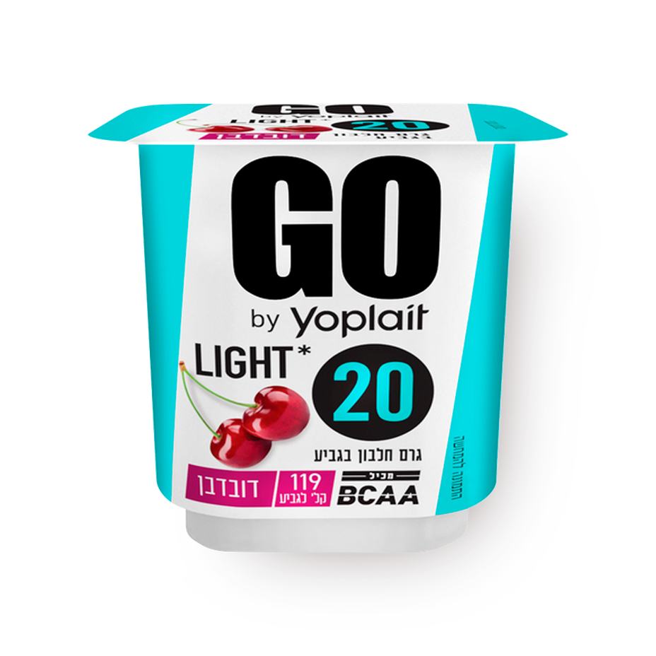 חלב, חלבוני חלב( 7.9%) , דובדבן מבושל( 7.5%) , מים, עמילן מעובד( E1422) , מייצבים( פקטין, לוקוסט בין גאם) , צבע מאכל( רכז גזר שחור) , מווסתי חומציות( סודיום ציטראט, קלציום ציטראט) , ממתיקים( אספרטיים, אססולפאם קיי) , חומרי טעם וריח. עד 0.5% לקטוז. דל לקטוז 20 גרם חלבון בגביע, מתוכם 11.5 גרם חלבוני מי גבינה, 8.5 גרם קזאינים